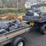 The picture shows all the bags ready to be taken to our local recycling centre with the help of our trusty ‘Billy and trailer’.